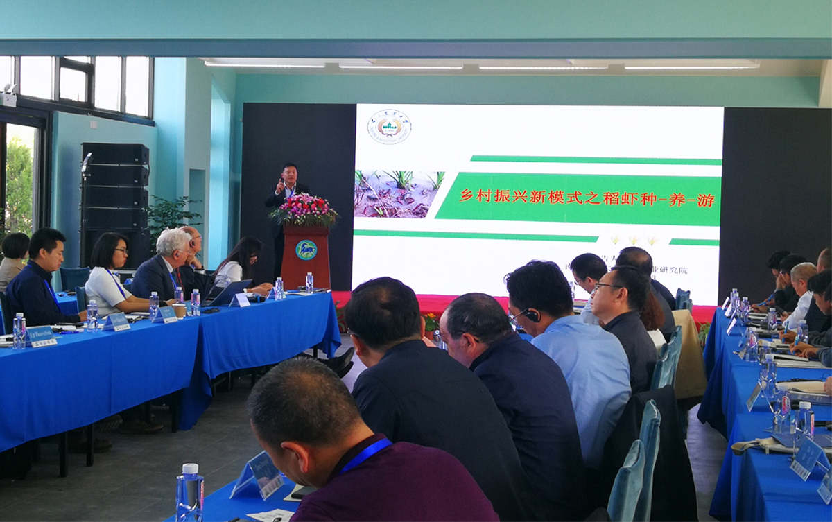 我们朱利群教授受邀参加了国际研讨会,并作了题为“乡村振兴新模式之稻虾种-养-游”的专题报告。报告指出,中国小龙虾产业从最初的“捕捞+餐饮”起步,已经逐步形成了集苗种繁育、健康养殖、精深加工、物流餐饮、文化节庆于一体的完整产业链。但技术的不规范性、技术的区域性差异性和技术绿色化不足的问题仍然存在,且稻虾综合种养所体现出的生态、休闲、科普等农业多功能并未充分挖掘与有效利用。为了充分挖掘稻虾综合种养中的多种功能,实现生产、生态、生活的有机融合,朱利群教授提出需要构建适合区域休闲农业发展的稻虾种-养-游模式,并对如何构建进行了详细阐述。与会专家针对朱教授的报告进行了热烈的讨论。